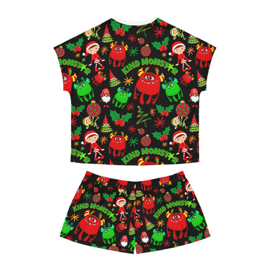 Kind Monstar Xmas Women's Black Short Pajama Set