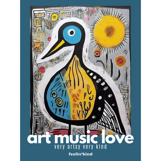 Celebrate creativity with the Art Music Love Prints Collection by feelin’kind. Each vibrant design fuses bold colors, playful subjects, and uplifting messages to remind us that kindness fuels art, music, and life. From the quirky cat and joyful pigs to sunny landscapes and whimsical everyday favorites like eggs, toast, cookies, and coffee—this series turns the ordinary into extraordinary.