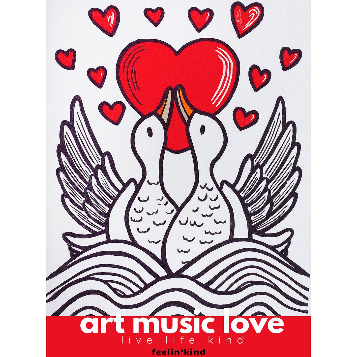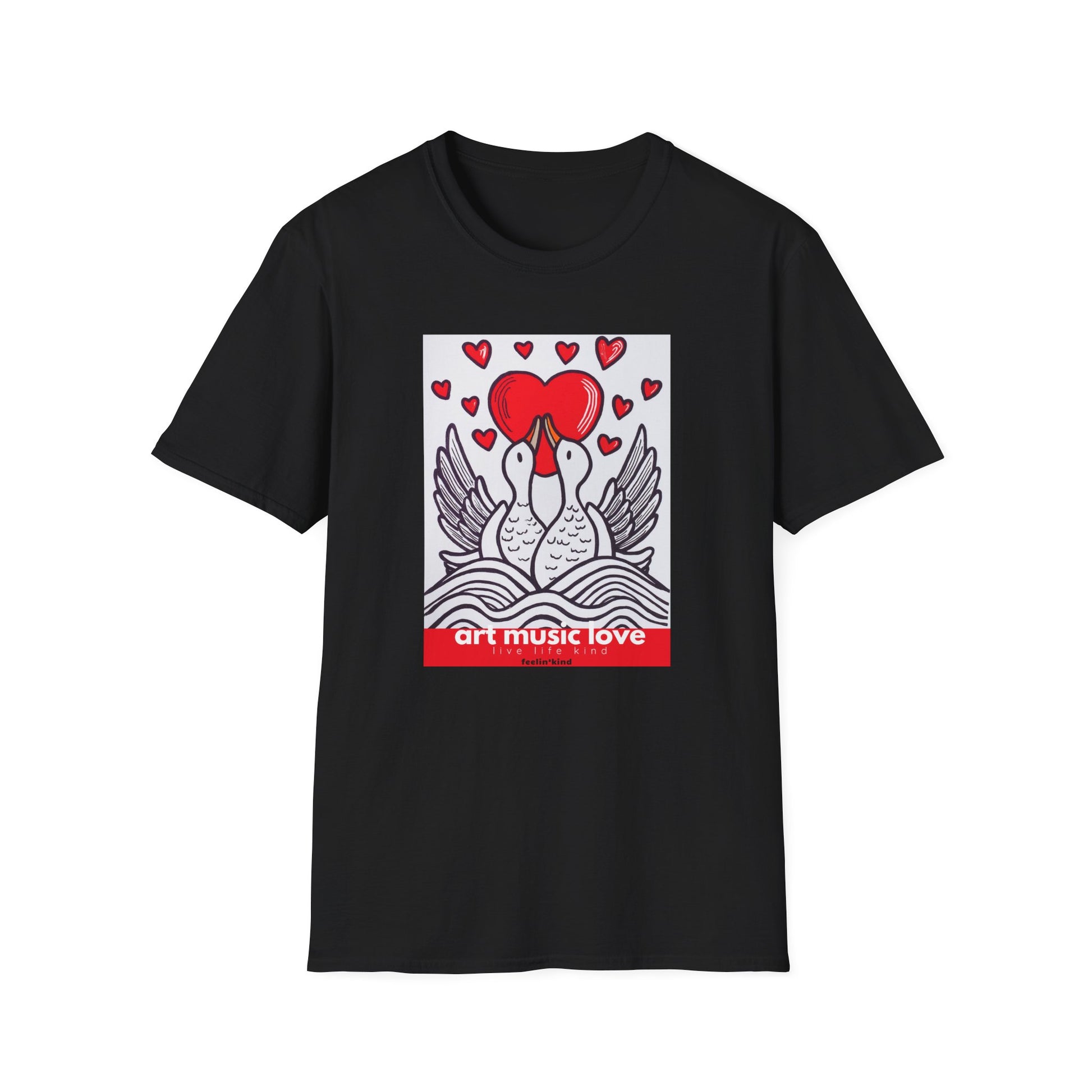 Spread love and unity with the Love Ducks T-Shirt from Feelin’Kind’s Art Music Love Collection. Featuring two graceful ducks lifting a heart toward the sky, this design symbolizes peace, devotion, and the power of kindness. Surrounded by floating red hearts, it’s a bold yet tender artwork that speaks to the soul.