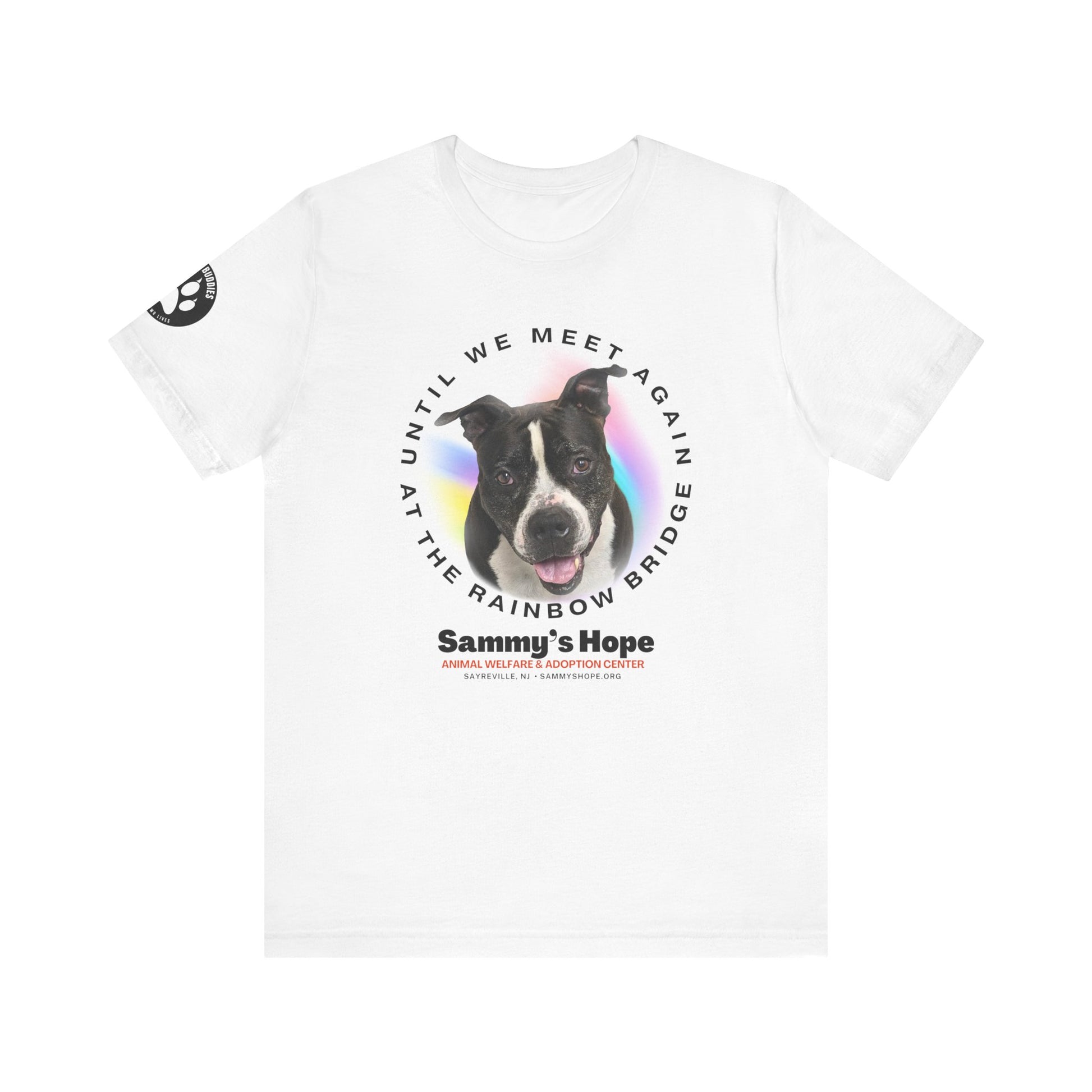 Honor the loving memory of our cherished friend, Nash with this heartfelt tribute shirt from Rescue Buddies & Sammy’s Hope Animal Welfare & Adoption Center. Featuring a beautiful, full-color portrait of Nash framed by a gentle rainbow glow. This tee celebrates Nash's special bond. Wear your love and remembrance with pride.