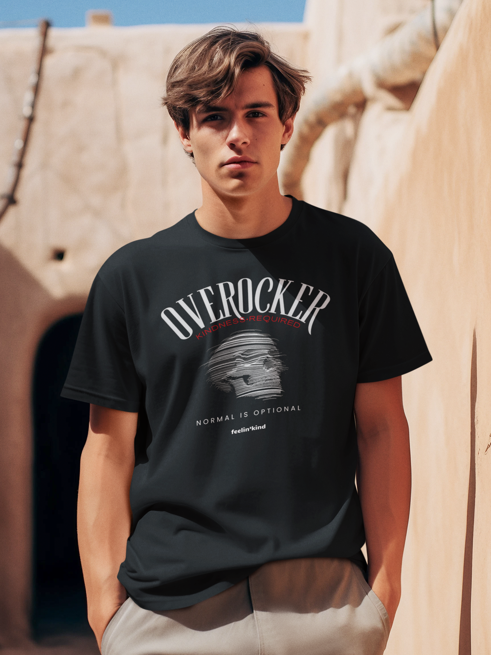 The Overocker Skull Collection by Feelin’Kind delivers an edgy, rebellious aesthetic with a deeper message. Featuring a distorted skull graphic under arched typography and the words “Kindness Required – Normal is Optional,” this design blends raw attitude with a call to compassion.