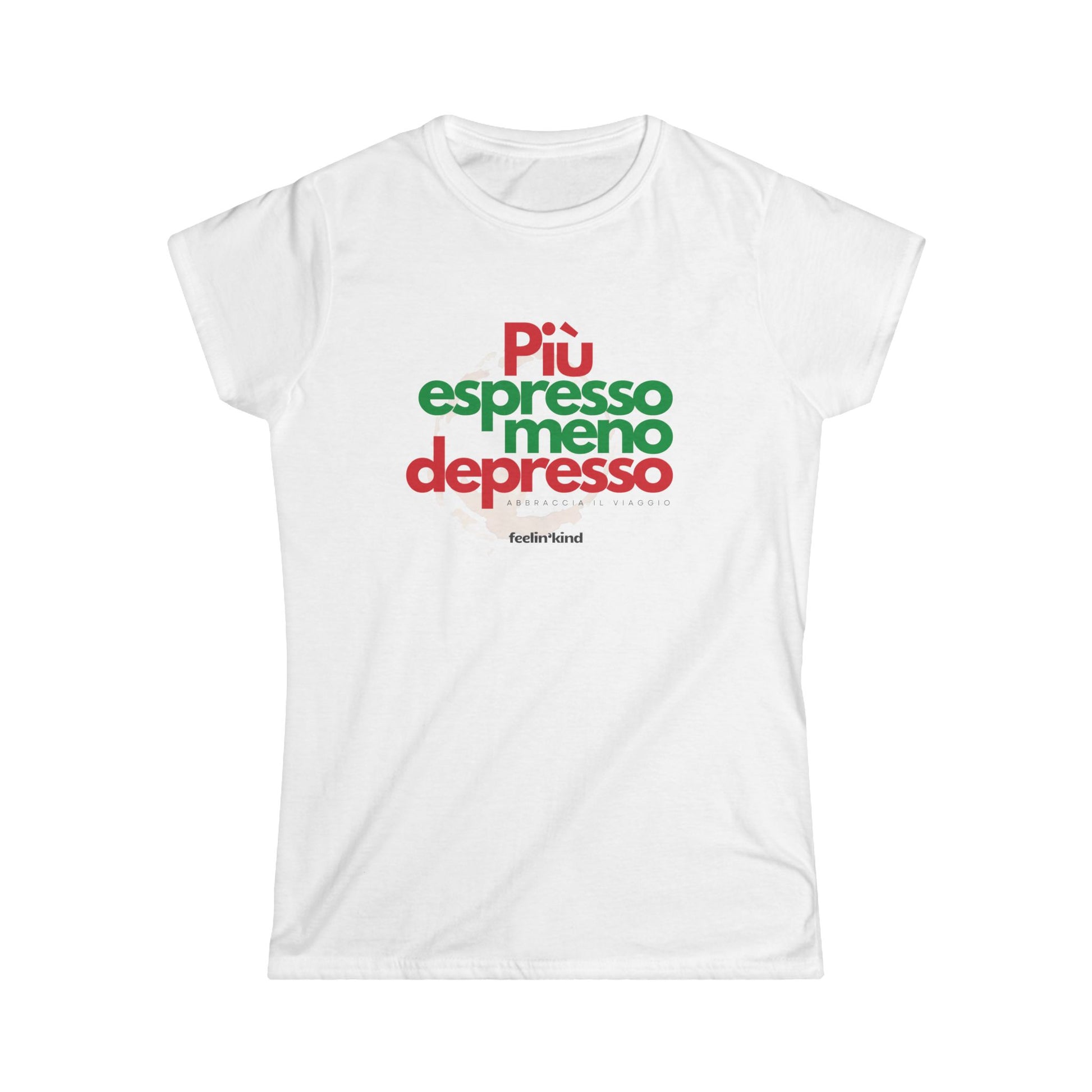 Fuel your day with good vibes and a touch of Italian charm. The Più Espresso Meno Depresso Tee (translated: More Espresso, Less Depresso) is a playful nod to coffee lovers everywhere. Featuring bold modern typography in rich espresso tones and a subtle coffee ring backdrop, this design captures the spirit of café culture and positivity — abbraccia il viaggio (embrace the journey).