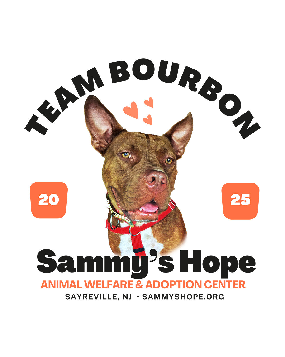 Show your love for rescue pets and represent a great cause with our Team Bourbon T-shirt! Featuring a bold portrait of Bourbon, a proud resident of Sammy’s Hope Animal Welfare & Adoption Center in Sayreville, NJ, this shirt is a tribute to love, loyalty, and second chances. Soft, Durable & Comfortable: Printed on high-quality cotton blend (S–3XL available), this shirt is perfect for volunteers, supporters, and pet lovers alike.